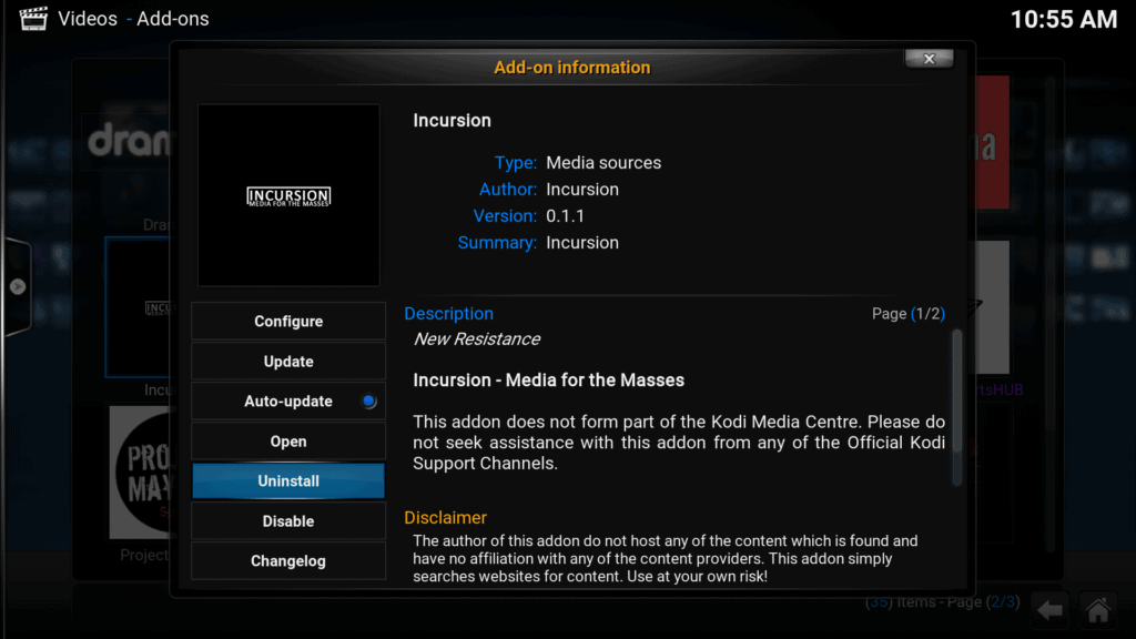 Android Box Malaysia ada menyediakan Incursion addon. Ia dihasilkan oleh Nixgates dan membolehkan untuk menonton movie dan tv show dengan link HD yang berkualiti dan stabil.